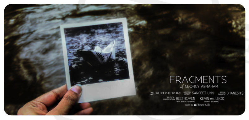 Fragments, a music video shot entirely on an iPhone 6s, earned an official selection at the 11th International Documentary and Short Film Festival of Kerala.